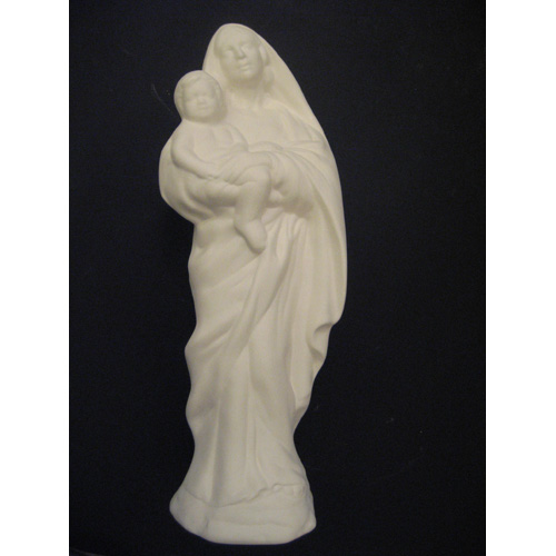 Réf. 01-059 Vierge à l'Enfant, figurine, L 11 x l 8 x h 30 ; biscuit de faïence fine (céramique brute à peindre ou à émailler)