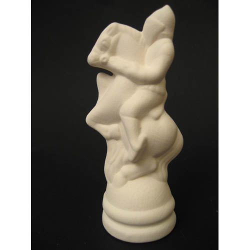 Réf. 13-075-4 chevalier sur cheval / cavalier, figurine, L 3,5 x l 3,5 x h 9,6 ; biscuit de faïence fine (céramique brute à peindre ou à émailler)