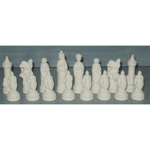Réf. 13-075-7 jeu d'échecs, seize figurines correspondantes au jeu ; biscuits de faïence fine (céramique brute à peindre ou à émailler)