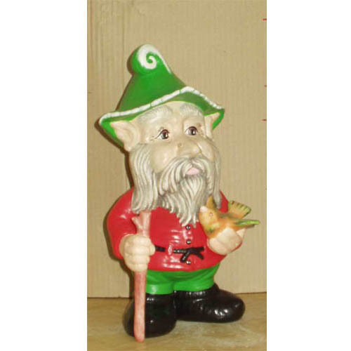 Réf. 02-002a-1 troll avec oiseau, figurine peinte, L 18 x l 18 x h 36