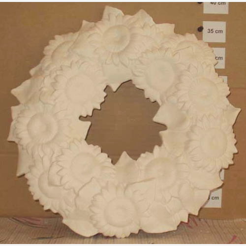 Réf. 12-004 tournesols, couronne murale, diam. 40 ; biscuit de faïence fine (céramique brute à peindre ou à émailler)