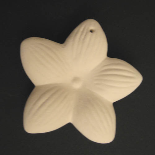 Réf. 12-031-2 fleur, figurine à suspendre, L 9,5 x l 1 x h 9,5 ; biscuit de faïence fine (céramique brute à peindre ou à émailler)