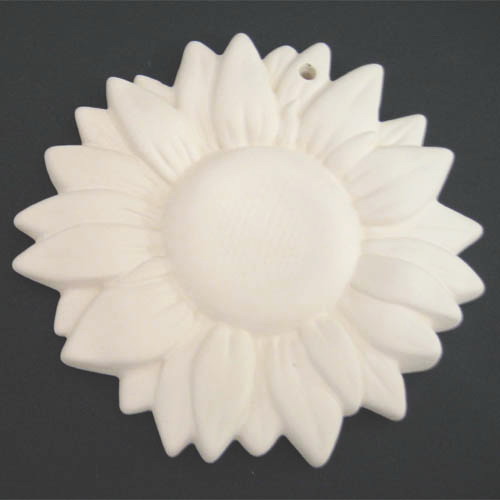 Réf. 12-009 tournesol, figurine / sous-plat, diam. 26 ; biscuit de faïence fine (céramique brute à peindre ou à émailler)