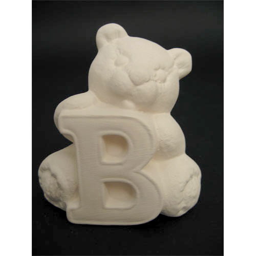 Réf. 04-006-1 ourson en peluche lettre « B », figurine, L 7 x l 5,5 x h 8 ; biscuit de faïence fine (céramique brute à peindre ou à émailler)