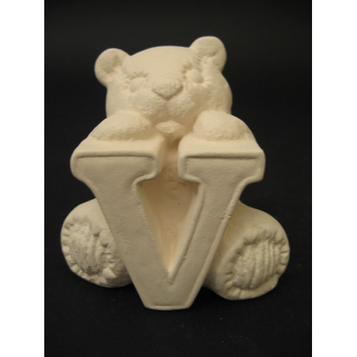 Réf. 04-006-17 ourson en peluche lettre « V », figurine, biscuit en faïence fine (céramique brute), L 6,5 x l 5 x h 7