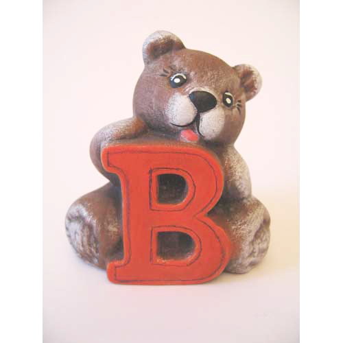 Réf. 04-006-1b ourson en peluche lettre « B », figurine , biscuit en faïence fine peinte, L 7 x l 5,5 x h 8