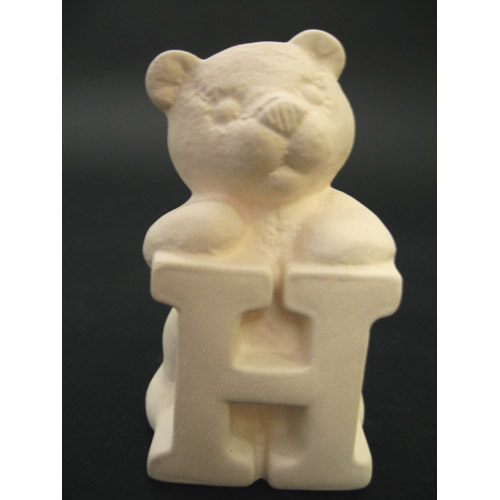 Réf. 04-006-6 ourson en peluche lettre « H », figurine, biscuit en faïence fine (céramique brute), L 5 x l 4,5 x h 8,6