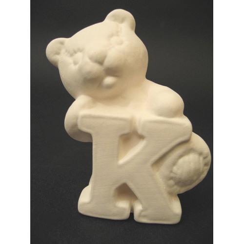 Réf. 04-006-8 ourson en peluche lettre « K », figurine, biscuit en faïence fine (céramique brute), L 6,5 x l 4,5 x h 8,5