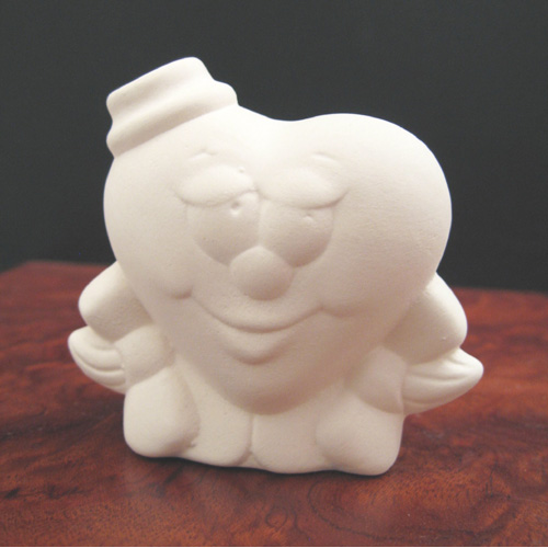 Réf. N°168-1 coeur garçon, figurine, L 5,5 x l 3,5 x h 6,5 ; biscuit de faïence fine (céramique brute à peindre ou à émailler)