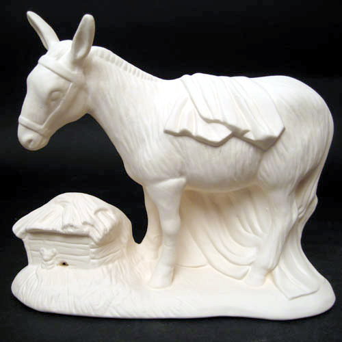 Réf. 01-082 âne, figurine, L 20 x l 8,5 x h 17 ; bbiscuit de faïence fine (céramique brute à peindre ou à émailler)