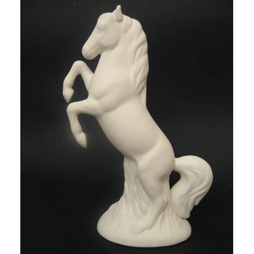 Réf. 08-020 cheval cabré, figurine, L 16 x l 10 x h 29 ; biscuit de faïence fine (céramique brute à peindre ou à émailler)