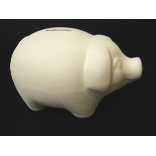 Réf. 11-044-2 cochon, tirelire sans bouchon, L 14 x l 9,5 x h 9 ; biscuit de faïence fine (céramique brute à peindre ou à émailler)