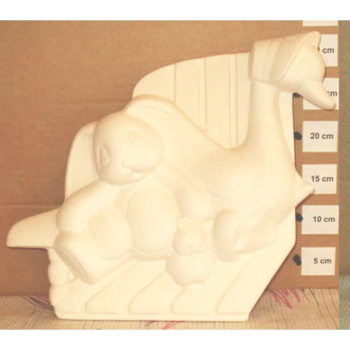 Réf. 04-057-1 lapin, oie et poussin, figurine, h 30 ; biscuit de faïence fine (céramique brute à peindre ou à émailler)