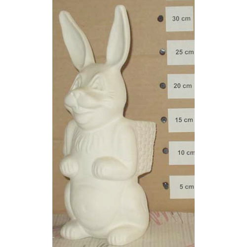 Réf. 05-012 lapin avec hotte, figurine, h 31 ; biscuit de faïence fine (céramique brute à peindre ou à émailler)