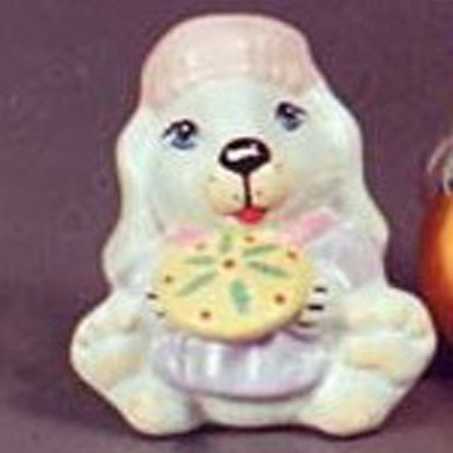Réf. N°156-1a lapin avec gâteau, figurine peinte, L 9 x h 8