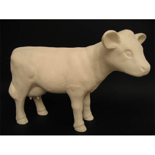 Réf. 08-008 vache debout, figurine, L 38 x l 16 x h 29,5 ; biscuit de faïence fine (céramique brute à peindre ou à émailler)