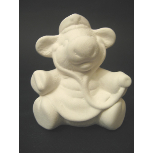 Réf. 08-038-2 veau médecin, figurine, L 7 x l 6 x h 8 ; biscuit de faïence fine (céramique brute à peindre ou à émailler)