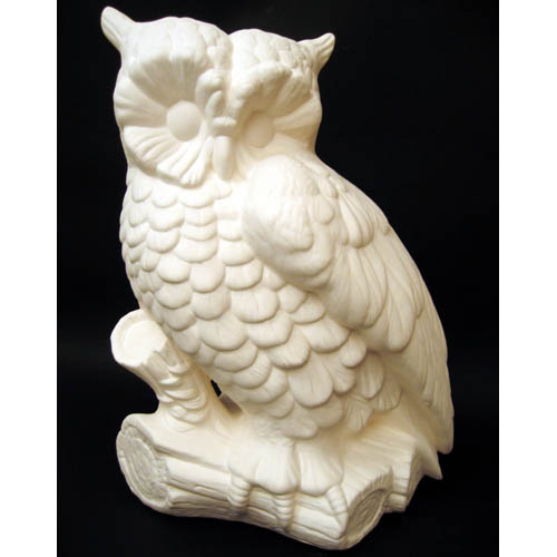 Réf. 10-001 hibou, figurine, L 30 x l 26 x h 41 ; biscuit de faïence fine (céramique brute à peindre ou à émailler)
