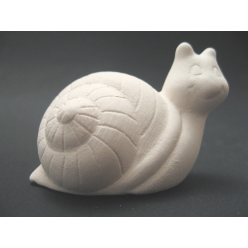 Réf. 11-084-1 petit escargot, figurine, L 7 x l 4,5 x h 4 ; biscuit de faïence fine (céramique brute à peindre ou à émailler)