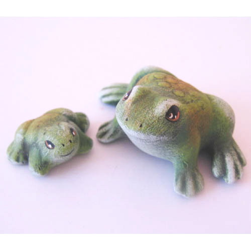 Réf. 03-011b-2 maman grenouille et son petit, groupe de deux figurines, L 6 x l 4 x h 3 ; L 3,3 x l 2,8 x h 1,5