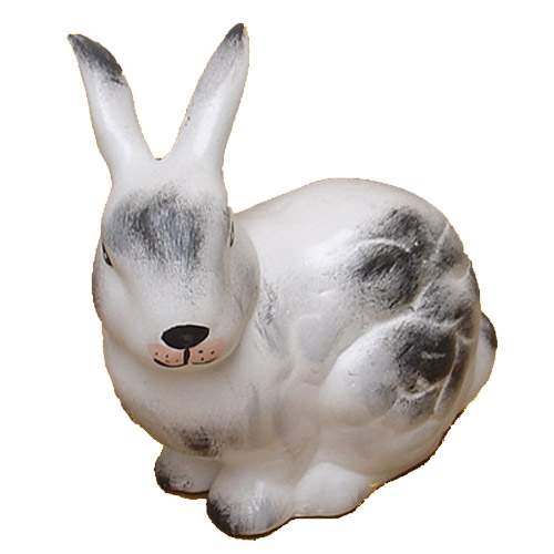Réf. 05-020a lièvre accroupis, figurine peinte, L 11 x l 9 x h 11,5