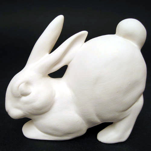 Réf. 05-022 lièvre accroupis, figurine, L 9,5 x l 6 x h 9 ; biscuit de faïence fine (céramique brute à peindre ou à émailler)