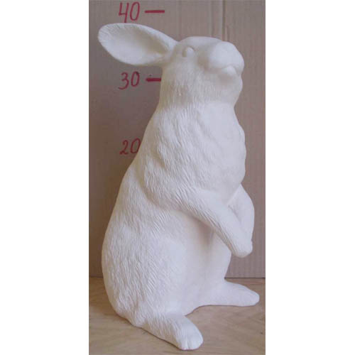 Réf. 05-056 lièvre sur les pattes de derrière, figurine, h 37; biscuit de faïence fine (céramique brute à peindre ou à émailler)