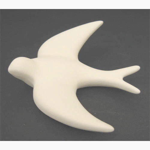 Réf. 10-070 hirondelle, figurine, L 13,5 x l 12 x h 4 ; biscuit de faïence fine (céramique brute à peindre ou à émailler)