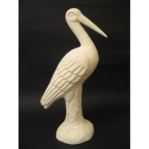 Réf. 10-093 cigogne, figurine, L 22 x l 14 x h 43 ; biscuit de faïence fine (céramique brute à peindre ou à émailler)