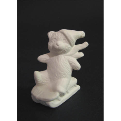 Réf. 01-105-2 ourson sur traîneau, figurine, L 2,5 x l 3,5 x h 4 ; biscuit de faïence fine (céramique brute à peindre ou à émailler)