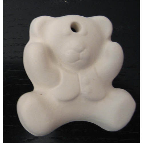 Réf. 01-146-7 ourson, figurine à suspendre, dos plat, L 4,5 x l 1 x h 4,5 ; biscuit de faïence fine (céramique brute à peindre ou à émailler)