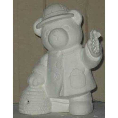 Réf. 04-021 ours avec ruche, figurine, L 15 x l 13 x h 17 ; biscuit de faïence fine (céramique brute à peindre ou à émailler)