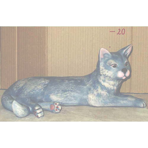 Réf. 06-006b chat couché, figurine peinte, L 40 x l 27 x h 17,5