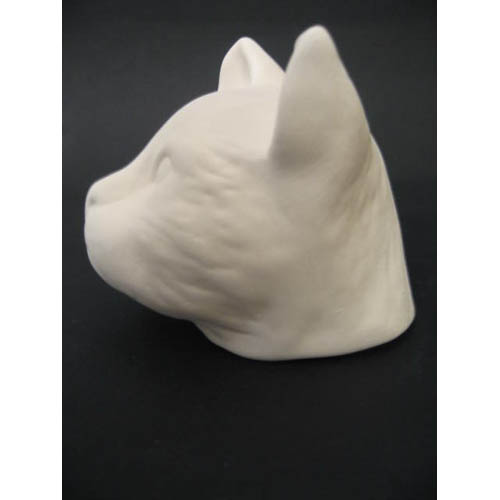 Réf. 06-010-1 tête de chat, figurine pour marionnette (avec ou sans trous sur le cou), L 9,5 x l 8 x h 10 ; biscuit de faïence fine (céramique brute)