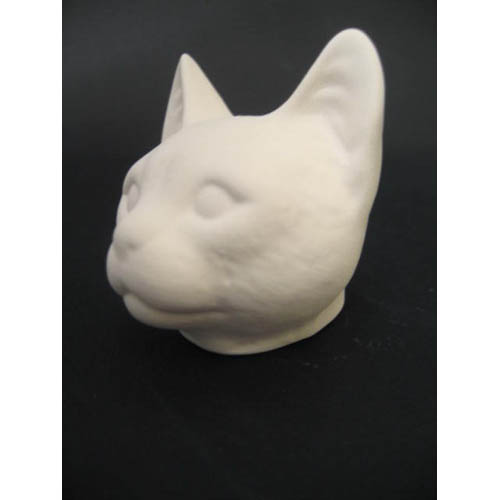 Réf. 06-010-1s tête de chat, figurine (sans cou), L 9,5 x l 8 x h 8,5 ; biscuit de faïence fine (céramique brute)
