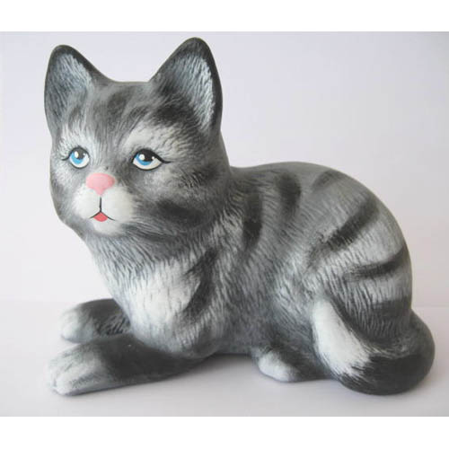 Réf. 06-016b chat tête tournée, figurine peinte (Bleu russe), L 16 x l 11 x h 16,5