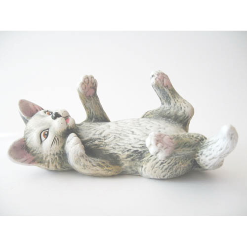 Réf. 06-049b chat couché sur le dos, figurine peinte, L 19 x l 12,5 x h 9,5