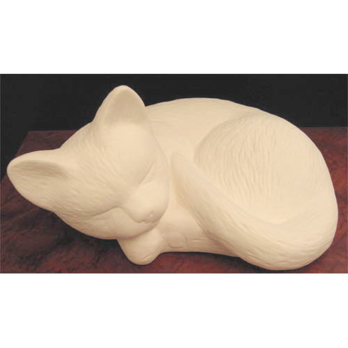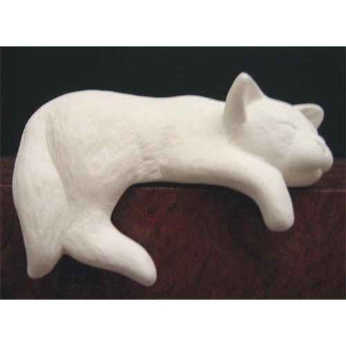 Réf. 06-052 chat dormant, figurine, L 19 x l 17 x h 11 ; biscuit de faïence fine (céramique brute)