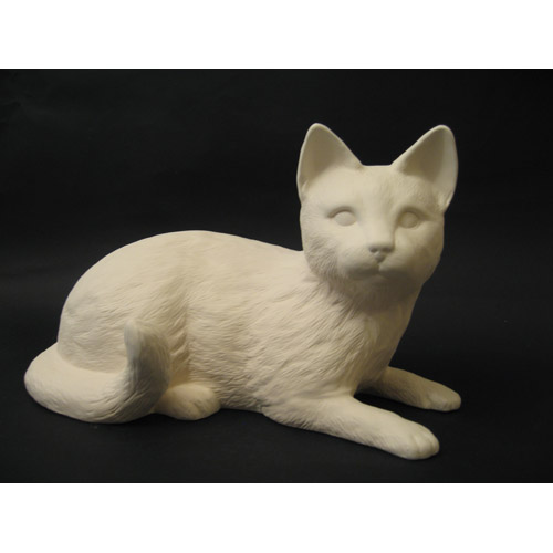 Réf. 06-055 chat lové, figurine, L 32 x l 20 x h 21 ; biscuit de faïence fine (céramique brute)