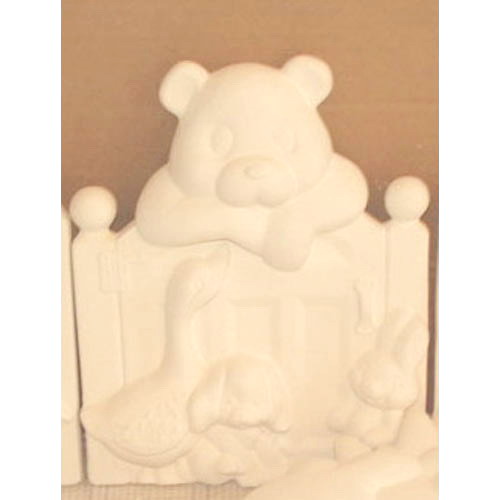 Réf. 04-058-2 ourson, oie, chiot, lapin, sculpture murale, h 28 ; biscuit de faïence fine (céramique brute à peindre ou à émailler)