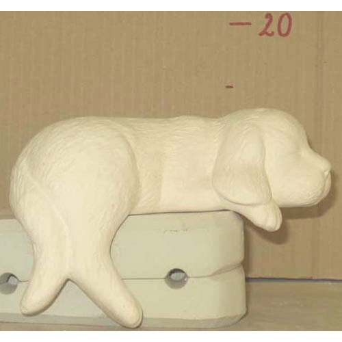 Réf. 07-005 chiot, figurine pour étagère, L 20 x l 12 x h 14 ; biscuit de faïence fine (céramique brute à peindre ou à émailler)