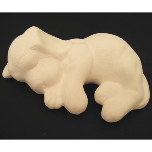 Réf. 07-006-3 chiot dormant, figurine, L 13 x l 8 x h 4,5 ; biscuit de faïence fine (céramique brute à peindre ou à émailler)
