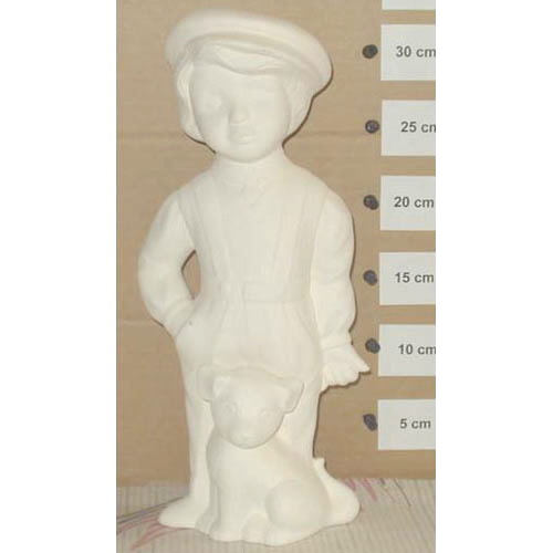 Réf. 07-037 garçon avec et chien, figurine, h 32 ; biscuit de faïence fine (céramique brute)