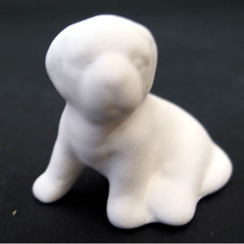 Réf. 07-008-2 chiot debout, mini figurine, L 4 x l 3 x h 4 ; biscuit de faïence fine (céramique brute)