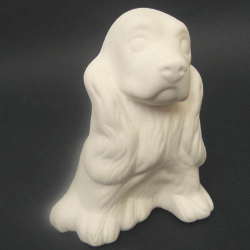 Réf. 07-048 cocker spaniel, figurine, L 9,5 x l 9 x h 12 ; biscuit de faïence fine (céramique brute)