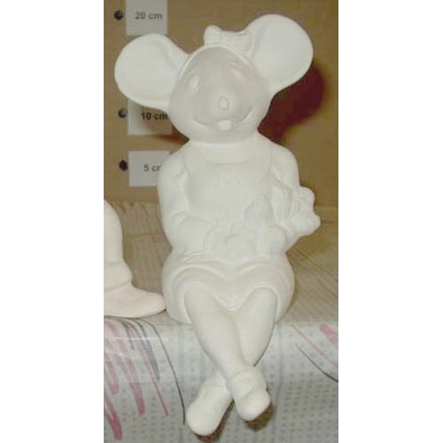 Réf. 11-088-2 souris fille, figurine pour étagère, h 22 ; biscuit de faïence fine (céramique brute à peindre ou à émailler)