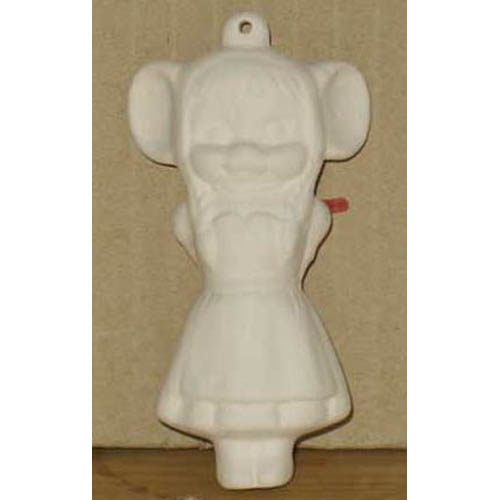 Réf. 11-101 souris en robe, figurine à suspendre, h 8 ; biscuit de faïence fine (céramique brute)