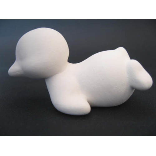 Réf. 11-008-3 petit manchot couché, figurine L 8 x l 5 x h 4,5 ; biscuit de faïence fine (céramique brute à peindre ou à émailler)