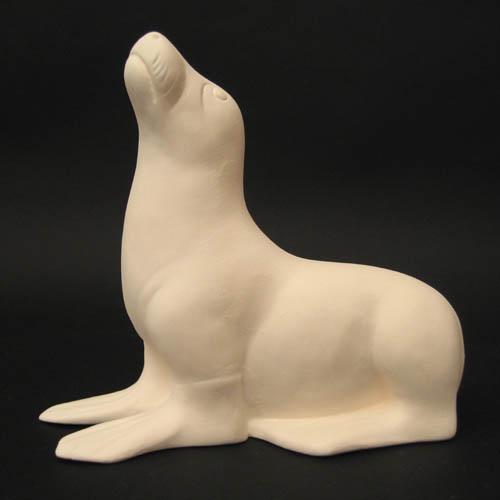 Réf. 11-003 otarie, figurine, L 16 x l 7 x h 15,5 ; biscuit de faïence fine (céramique brute à peindre ou à émailler)