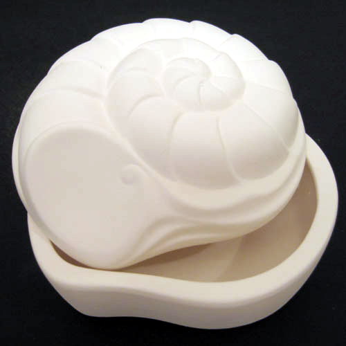 Réf. N°096 escargot, boîte, L 9,5 x l 8 x h 5 ; biscuit de faïence fine (céramique brute à peindre ou à émailler)